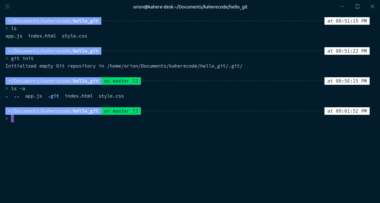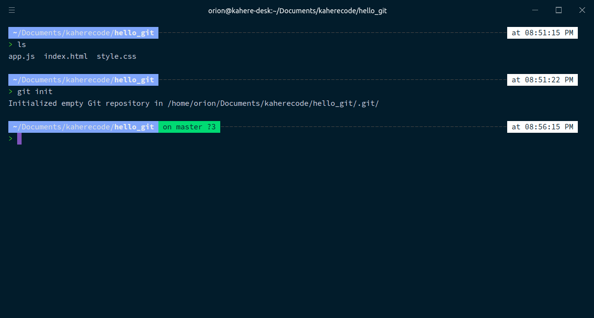 Initialized empty Git repository in /home/orion/Documents/kaherecode/hello_git/.git/